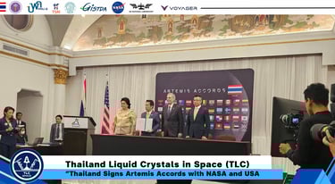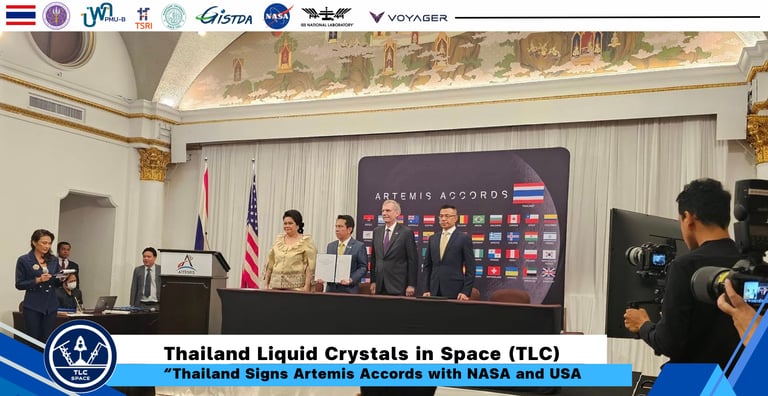 16 December 2024, Thailand is the 51st country to join the Artemis Accords, a framework for cooperation in Moon exploration and beyond. Signing ceremony by Director of Gistda witnessed by the Minister of Higher Education Science Research and Innovation of Thailand (MHESI) and Ambassador of USA to Thailand. Speeches given by Thailand Minister of MHESI and Senator Bill Nelson, Director of NASA. Thailand Liquid Crystals in Space (TLC) is joining the ceremony and space exhibition to celebrate the event.