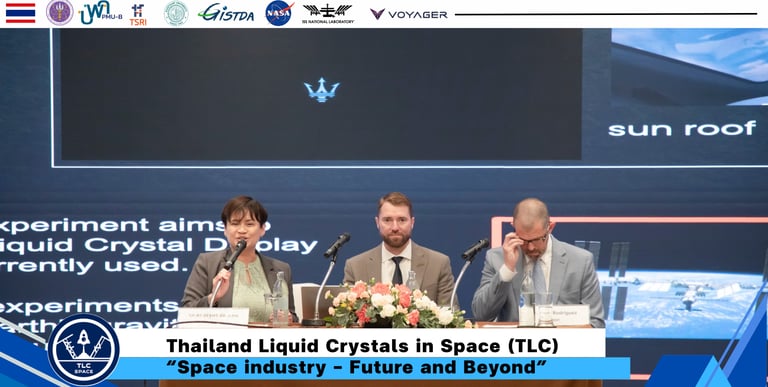 The TLC project is a collaboration between Kasetsart University and the Geo-Informatics and Space Technology Development Agency (GISTDA) in partnership with the National Aeronautics and Space Administration (NASA). The initiative involves a team of Thai researchers, led by Assoc. Prof. Dr. Nattaporn Chattham, participating in liquid crystal studies aboard the International Space Station (ISS).