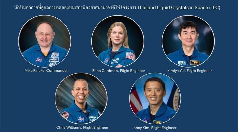 This important mission is being carried out in collaboration with the TLC research team, led by Assoc. Prof. Dr. Nattaporn Chattam from the Department of Physics, Faculty of Science, Kasetsart University. The team is studying thin films of liquid crystals under microgravity conditions for a total of 120 hours of space experiments, conducted from December 1, 2025, to December 22, 2025.